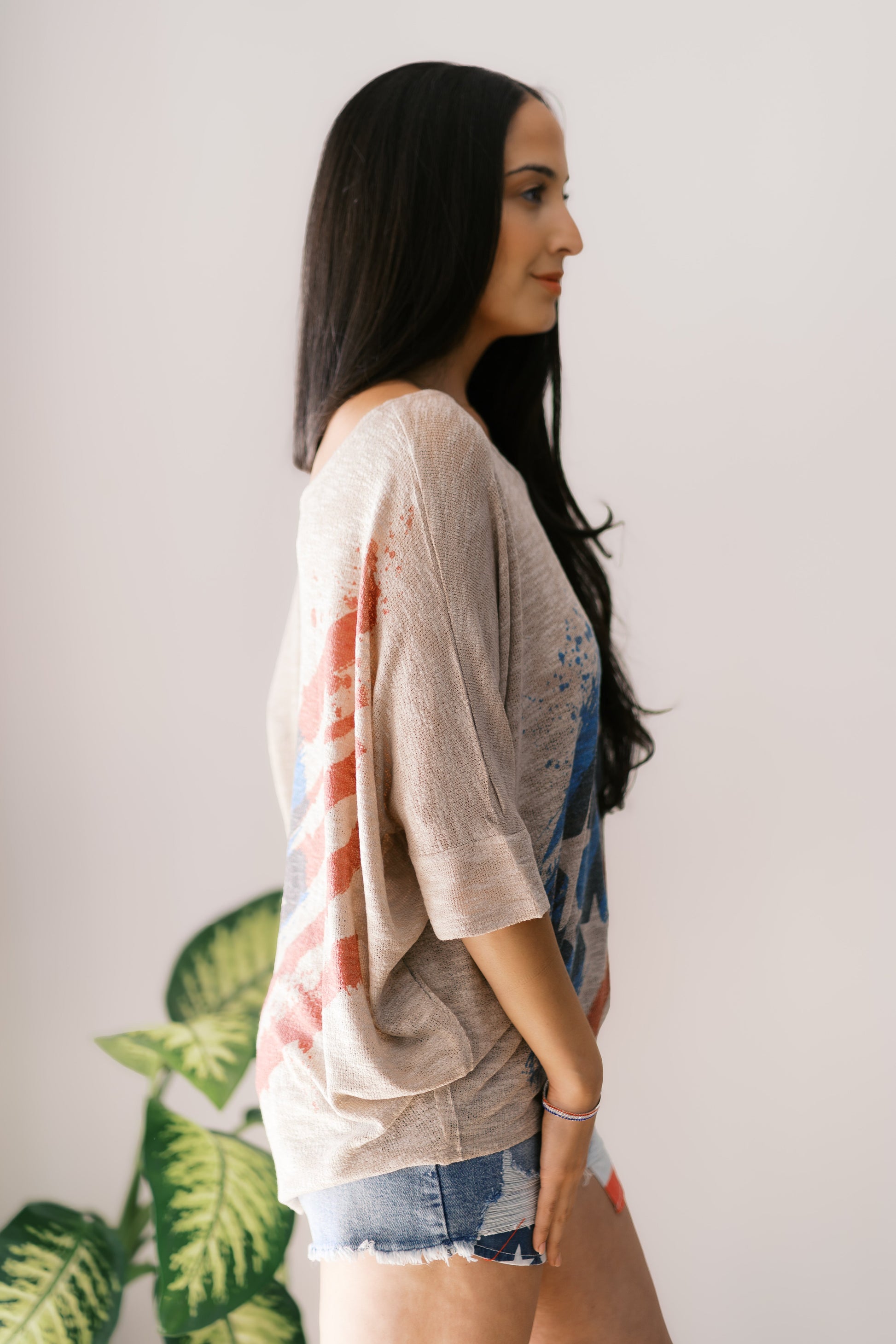 Get ready to show off your patriotic side with our Star-Spangled Top! Made with a soft fabric, this V neck top boasts a knit American flag design that is perfect for casual, everyday wear. So go ahead, make your outfit pop with this playful and comfy top! 🇺🇸